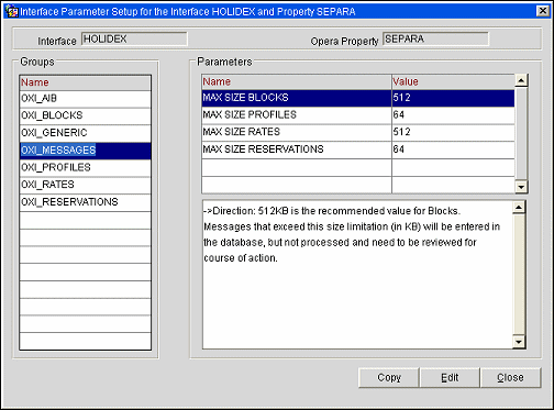 ->Direction: 512KB is the recommended value for Rates. Messages that exceed this size limitation (in KB) will be entered in the database, but not processed and need to be reviewed for course of action. |