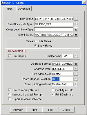 This comprehensive report combines room and catering elements and details into one customer facing document. The items that can print here are: